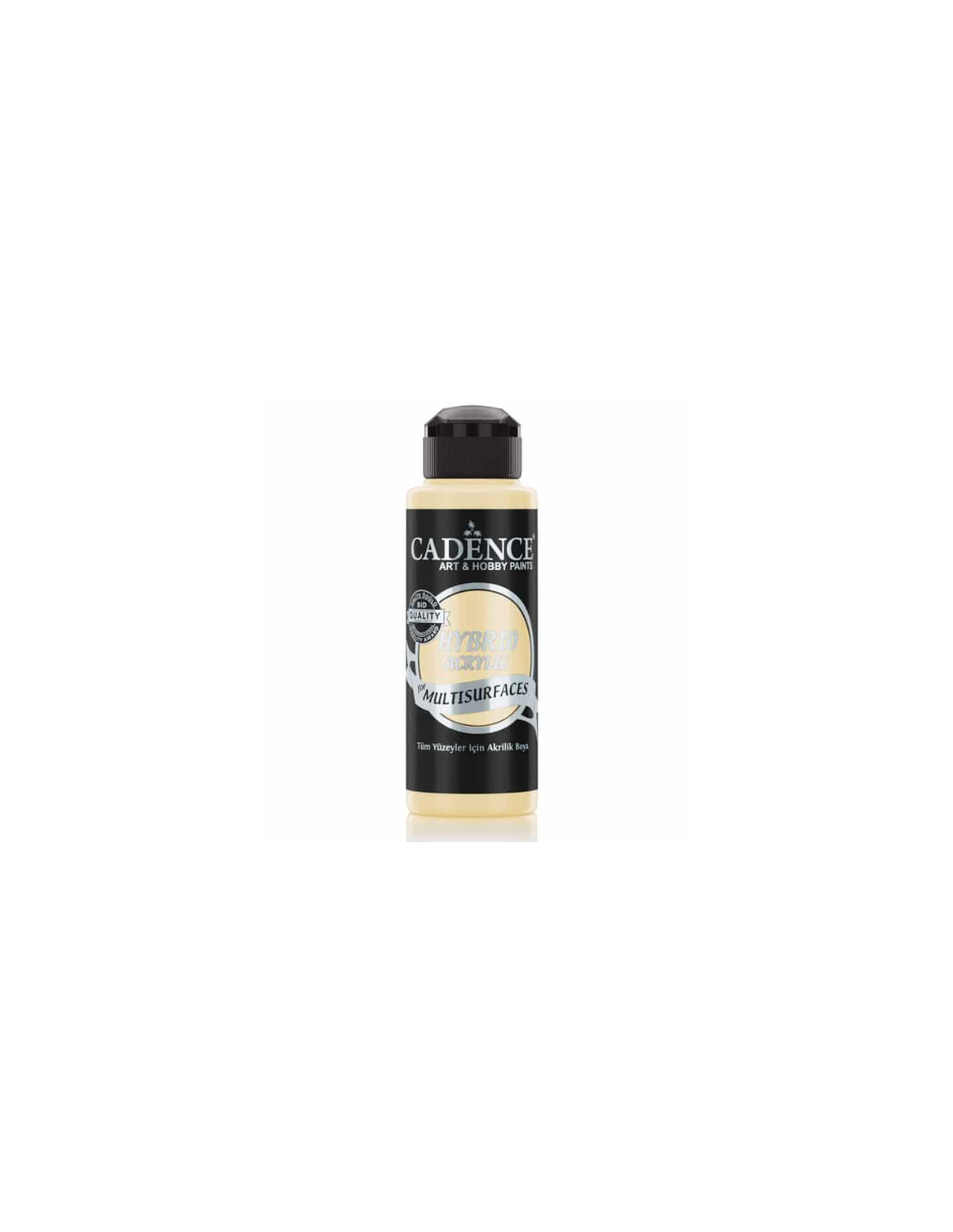 Hybrid Acryl maling fra Cadence. Ny formel gør den hæfter på næsten alle overflader som træ, pap, glas, jern, glas, keramik mm tåler fugt og kræver ikke efterbehandling. Fås i mange flotte farver og du kan vælge imellem 70 ml 100 ml ell 500 ml. Pensel rengøres i vand.