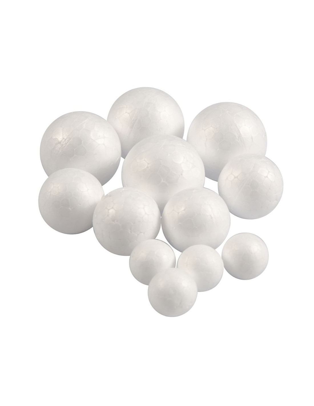Kugle styropor 12 stk./ 1 pk., diam. 20+30+40 mm, hvid 54305