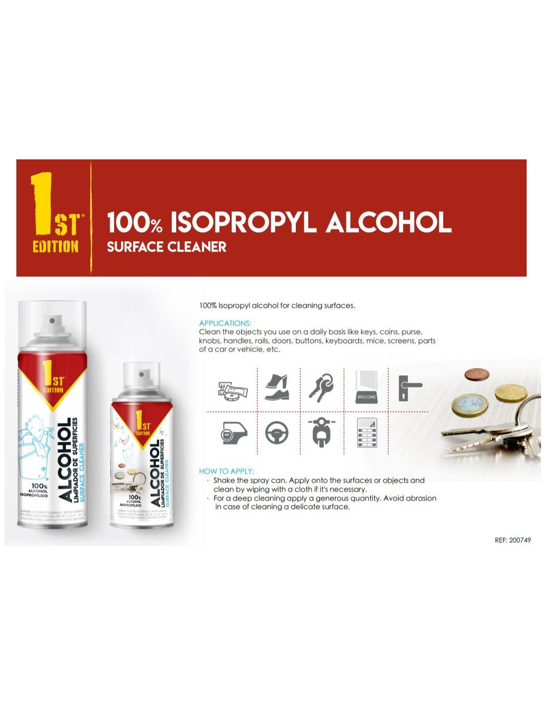 Sprit i praktisk sprayflaske der fordeler produktet godt. 100% alkohol og nemt at rengøre for bacterier mm kan anvendes på hænder, værktøj, dørhåndtag, toiletter, penge, nøgler og elektronisk udstyr uden at efterlade nogen rest. da det er 100% alkohol fordamper det hurtigt. Kan bruges både privat og professionelt. Indeholder 100 ml ell 150 ml