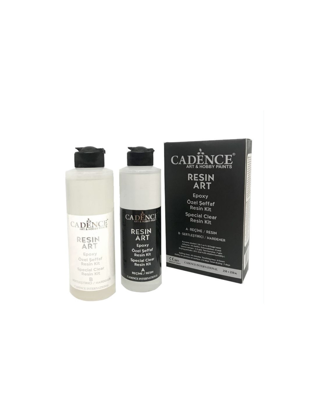 Cadence Resin/Epoxy pakket med 2x120 ml eller 2x500 ml . Det er en ikke brandfarlig blank transparent harpiks. Se nedenfor