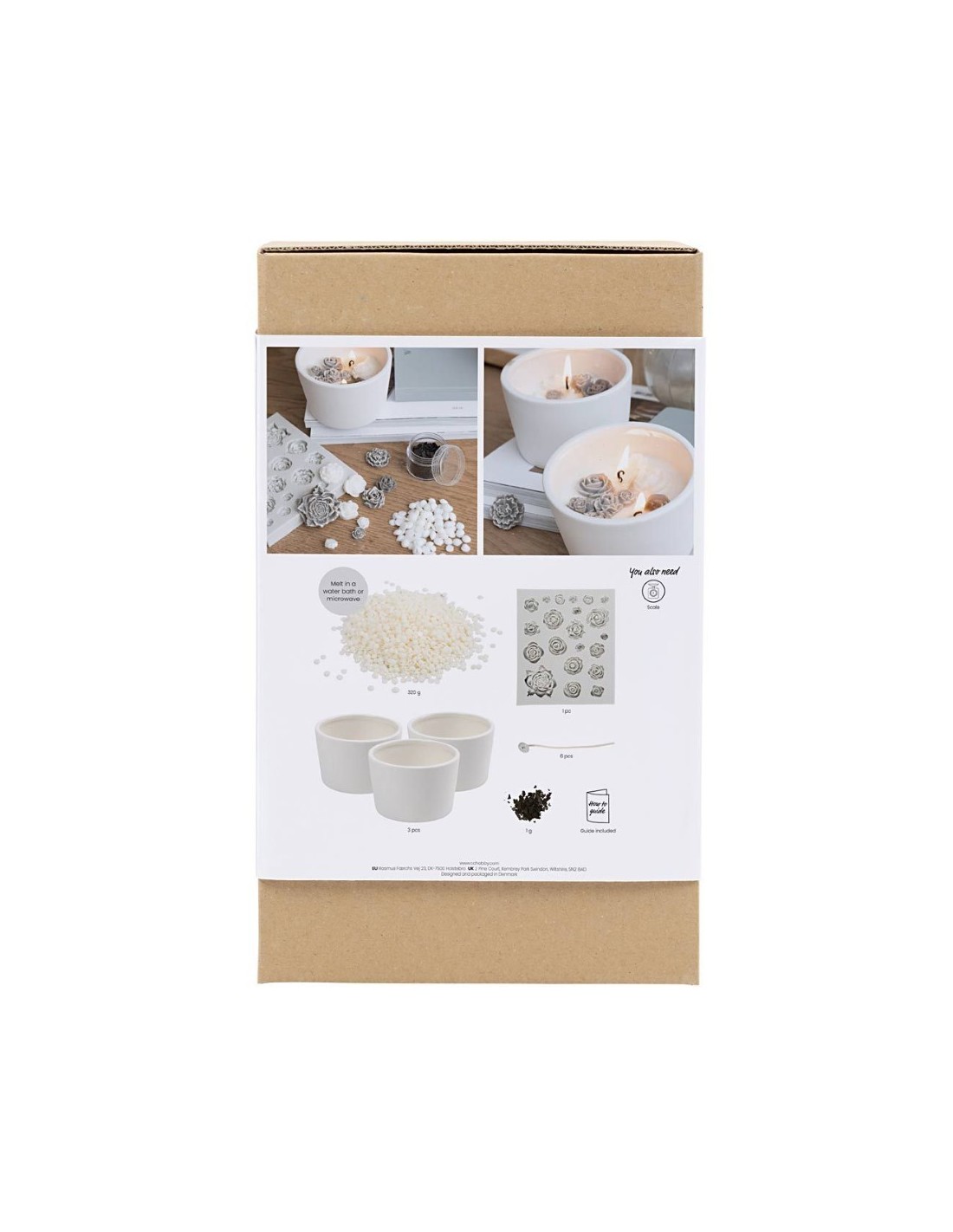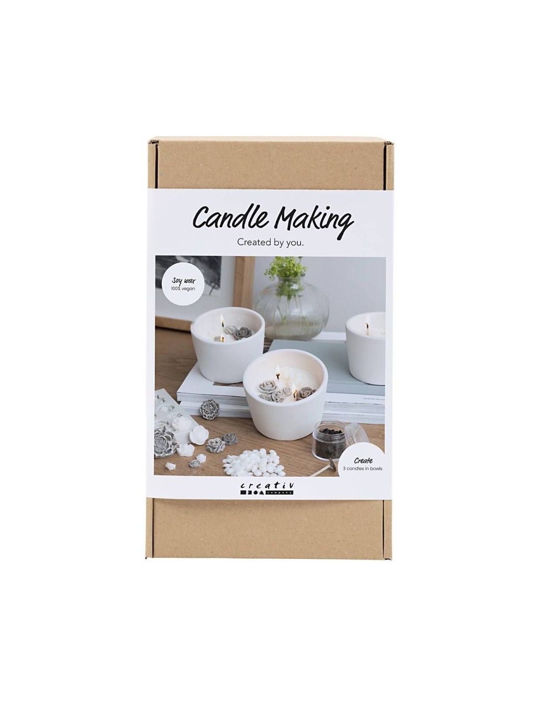Med Creativity in a Box kan du lave tre stilrene, luksuriøse soyalys med fine roser på toppen. Sættet indeholder alt, du skal bruge, samt vejledning, så processen er nem og hyggelig fra start til slut.