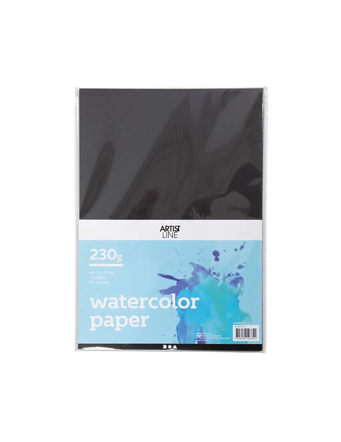 Sort akvarelpapir i A4-format (210x297 mm), 230 g – 10 ark pr. pakke.